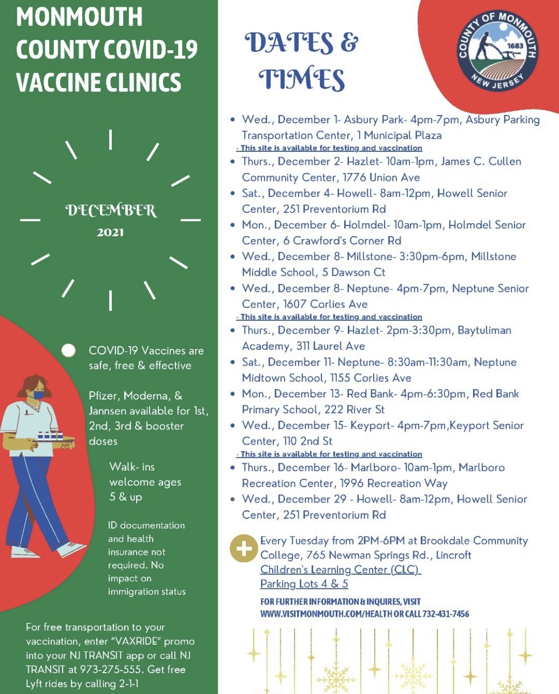 Monmouth County Regional Health Commission Upcoming COVID-19 Vaccine Clinics